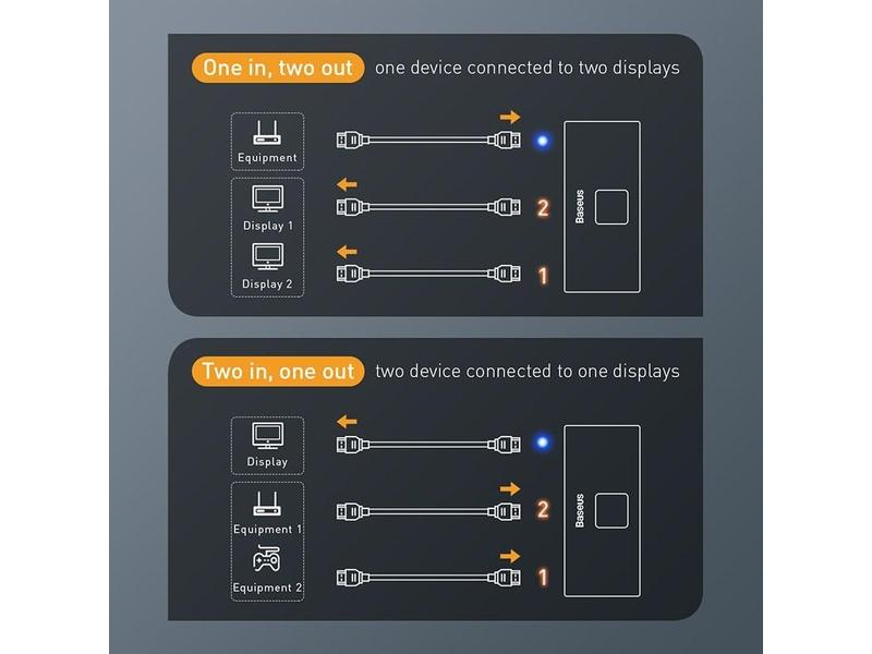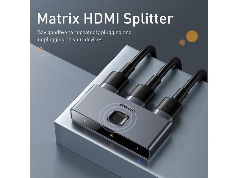 Baseus Matrix HDMI Splitter 2v1 / 1v2 šedá