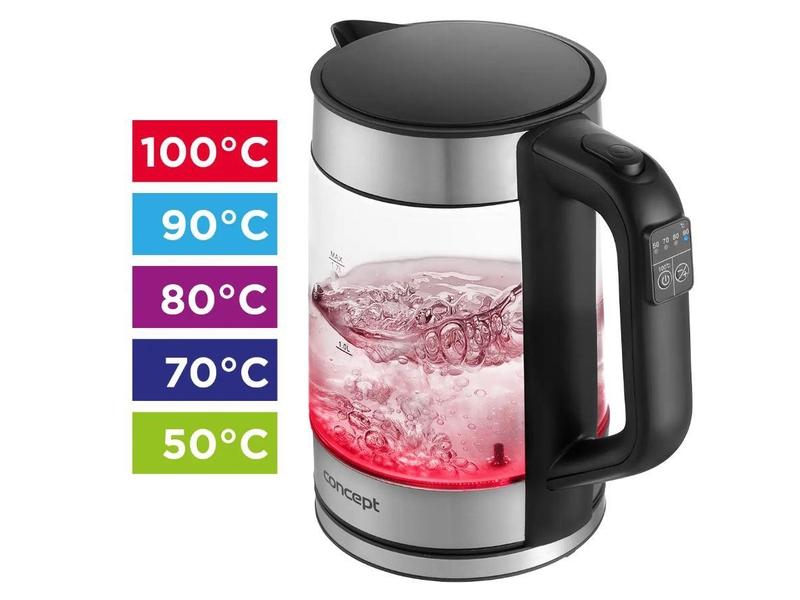 Skleněná rychlovarná konvice Concept RK4067 s objemem 1,7 l nabízí