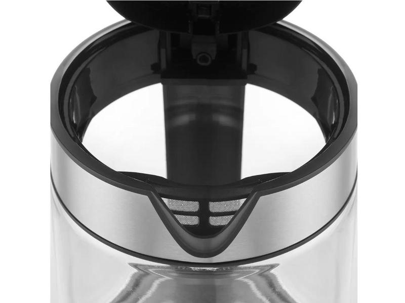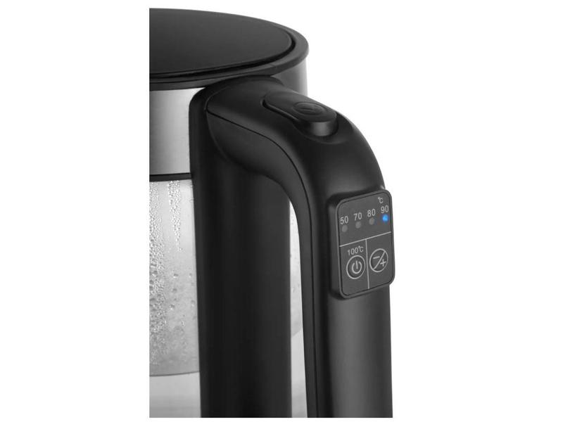 Skleněný design konvice příjemně doplňuje barevné podsvícení, které