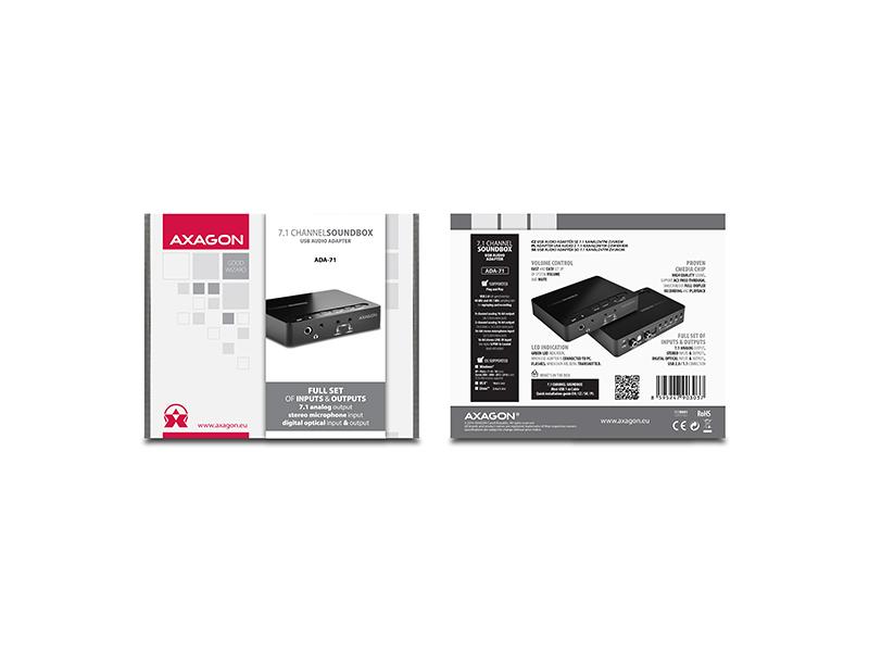 USB zvuková karta AXAGON ADA-71, USB2.0 - 7.1 audio