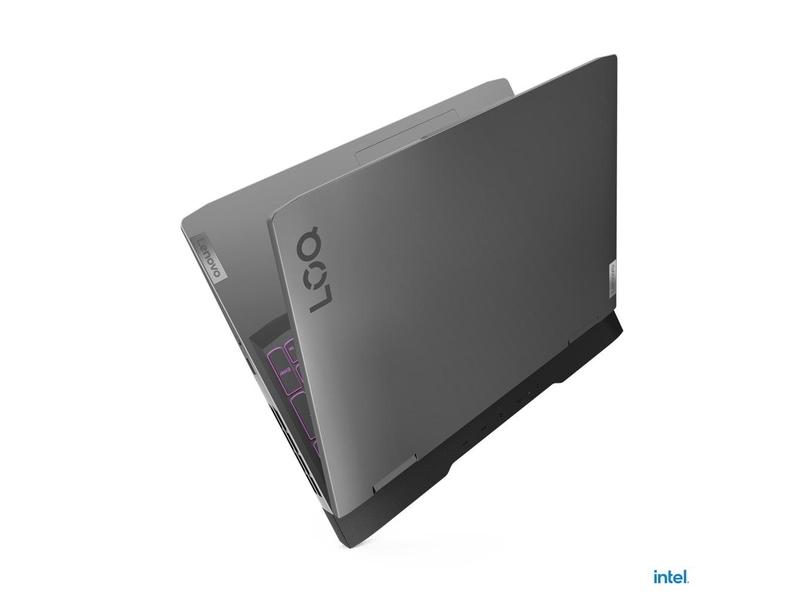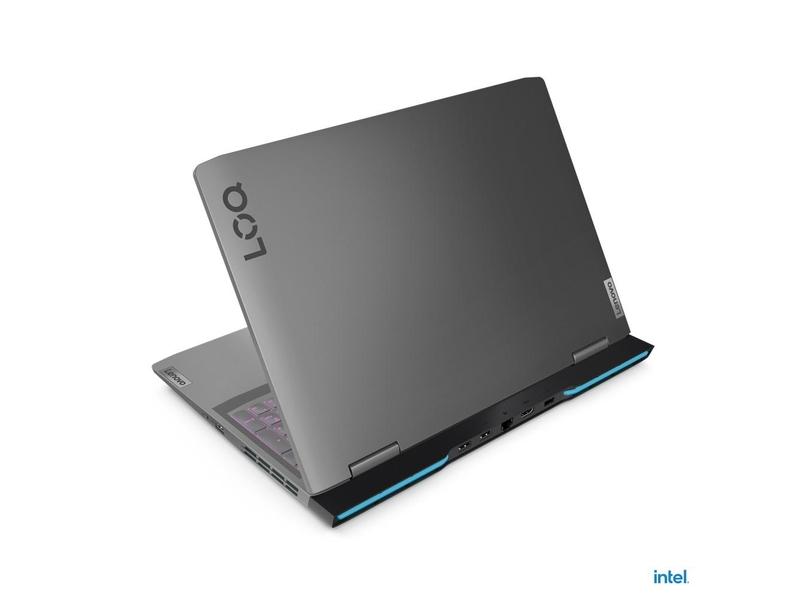 šasi v barvě Storm Grey má na sobě ikonické logo Lenovo LOQ. Tento