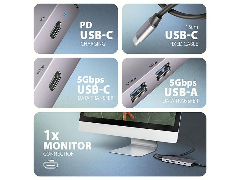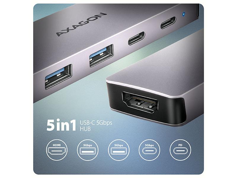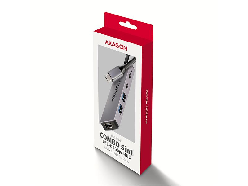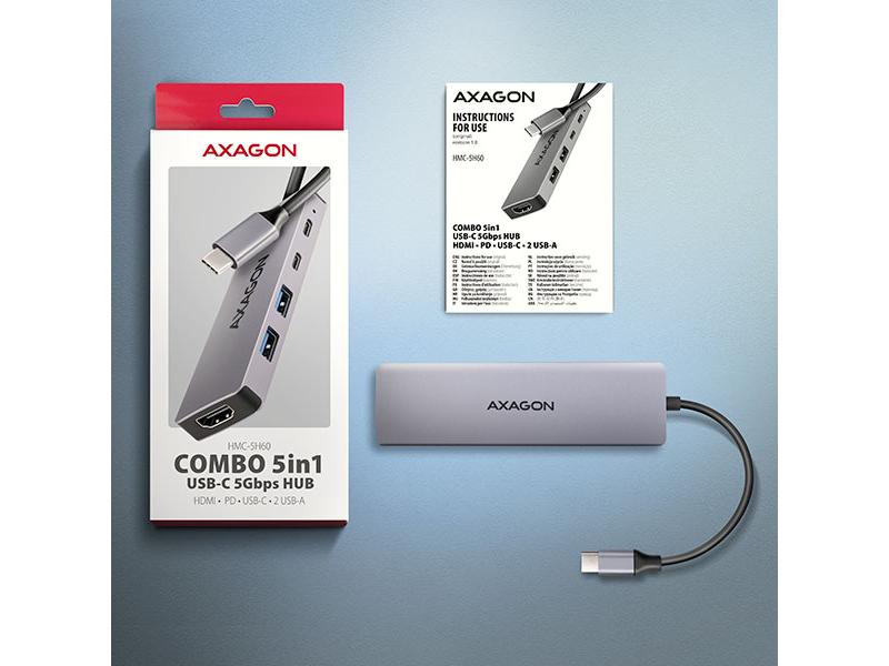 Multiportový USB-C 5Gbps AXAGON HMC-5H60 5in1 hub rozšíří