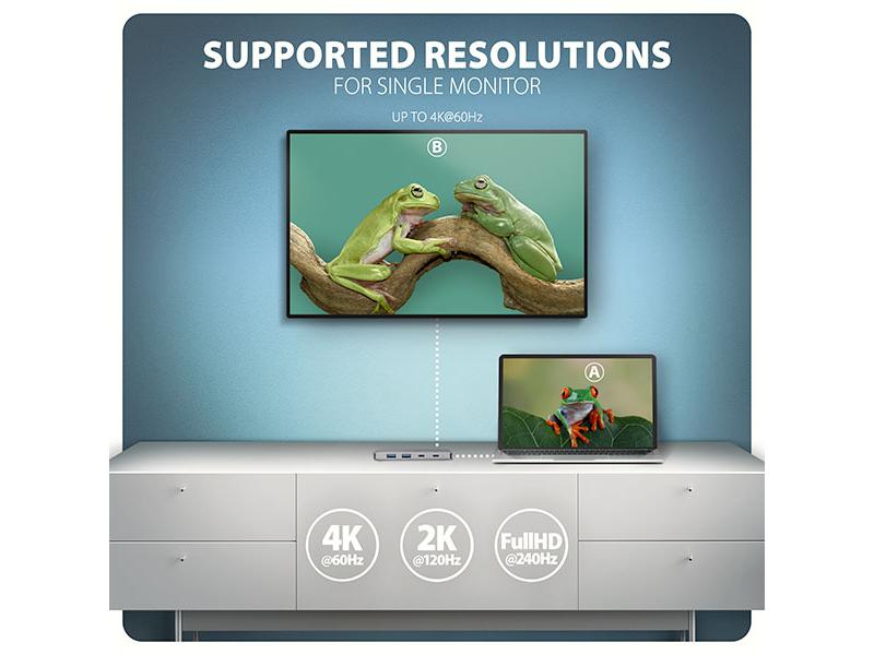 výstupu je nutné hub zapojit do USB-C portu s podporou DisplayPort