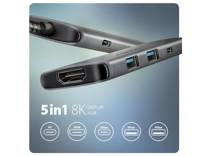 Multiportový USB-C 5Gbps hub AXAGON HMC-5H8K rozšíří Váš