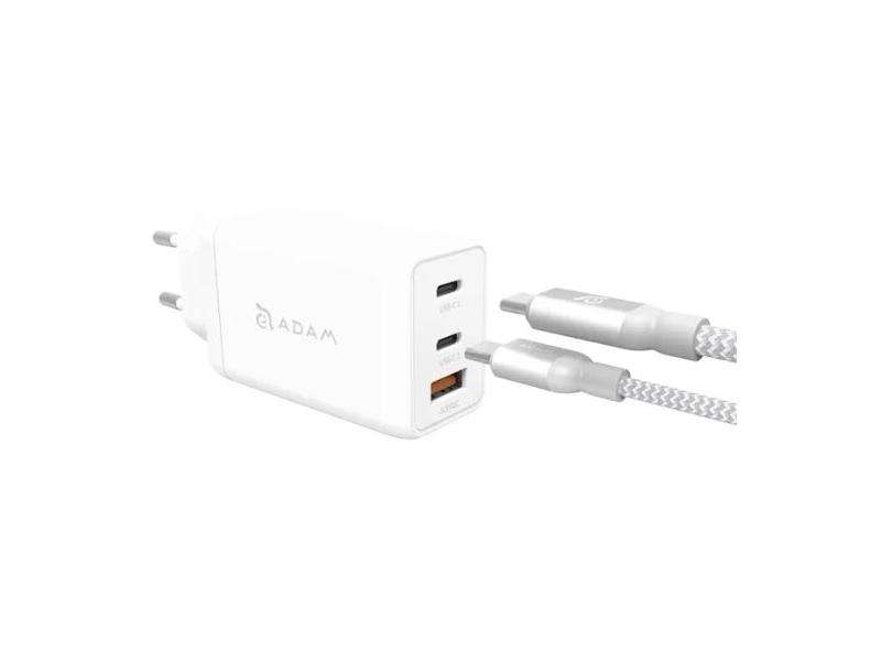 dobíjet až tři zařízení současně. Nabíječka je dodávána s USB-C/USB-C