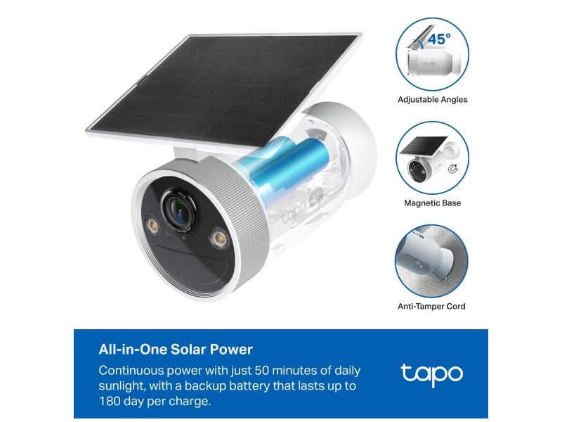 celodenní provoz pomocí vestavěného solárního panelu. Tapo C465 vám díky
