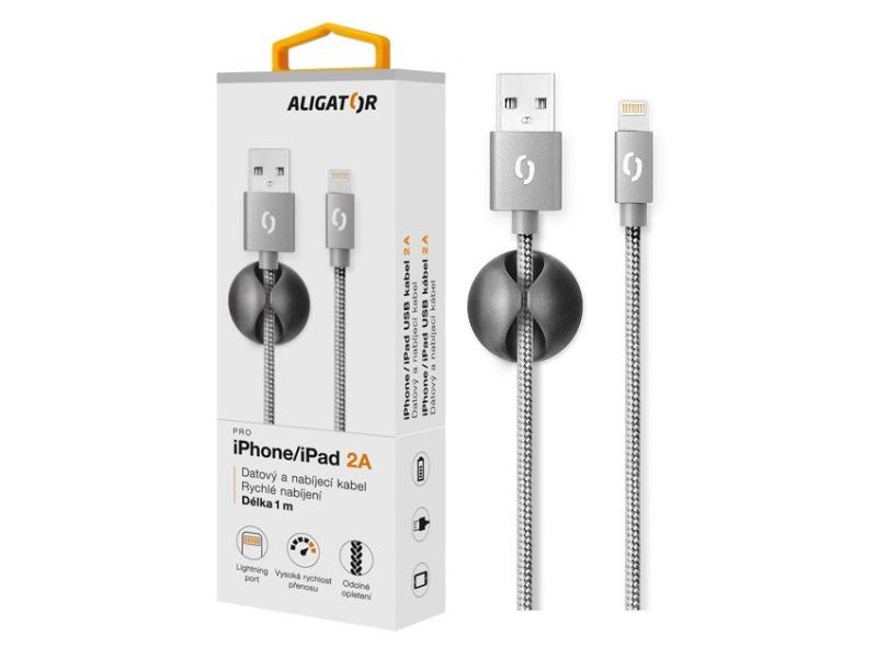 Datový kabel ALIGATOR PREMIUM Lightning kabel 1m, šedý (gray)