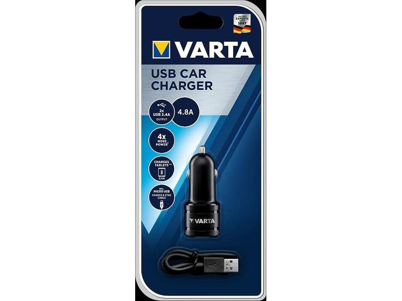 Nabíječka do auta VARTA nabíjecí autoadaptér, 2x USB, 4800mA max., DC 12V, černý