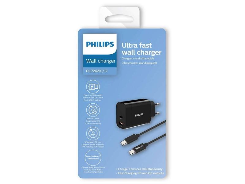 Nástěnná nabíječka s porty 1x USB-C, 1x USB A + USB-C kabel 1m