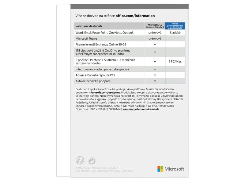 Klíčové vlastnosti Office 2021 pro domácnosti a podnikatele, SK BOX
