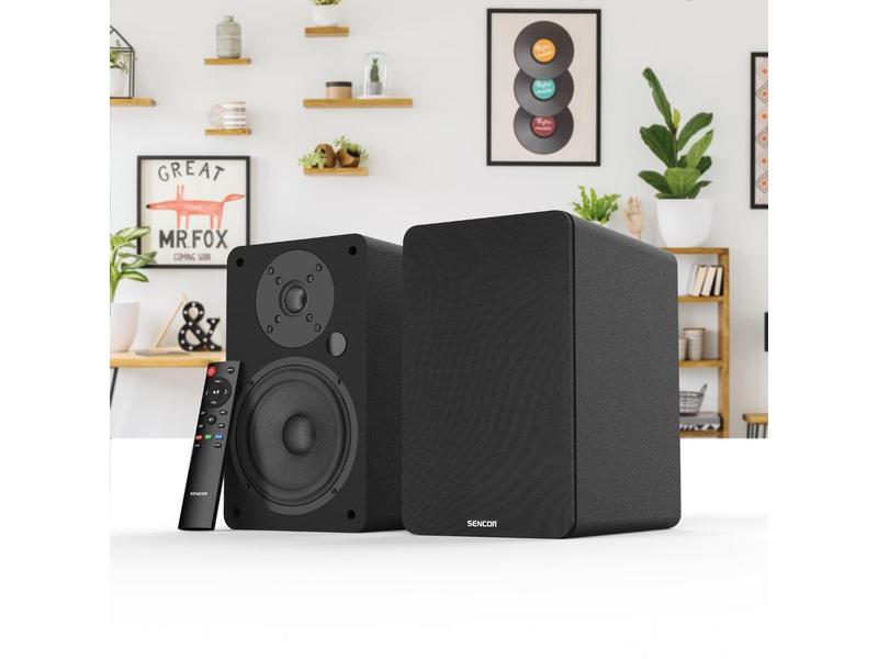aktivní regálové reproduktory o maximálním výkonu 200 W s čistým a