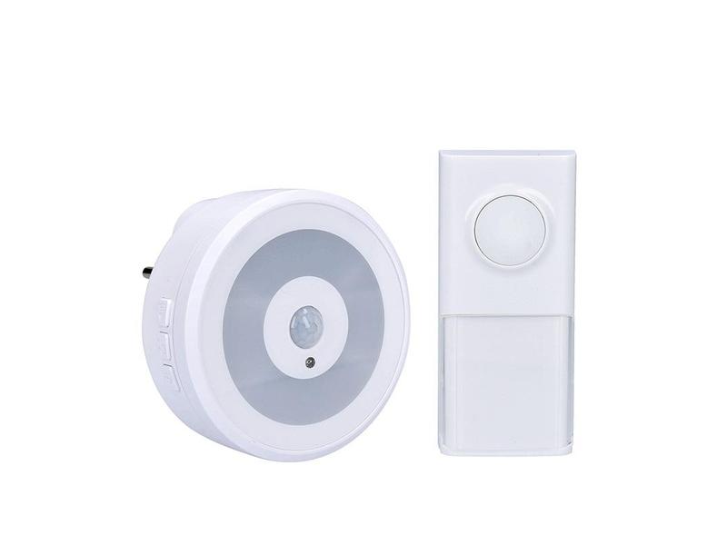 světélko svítí bílou barvou, světelná signalizace zvonku je modrou barvou