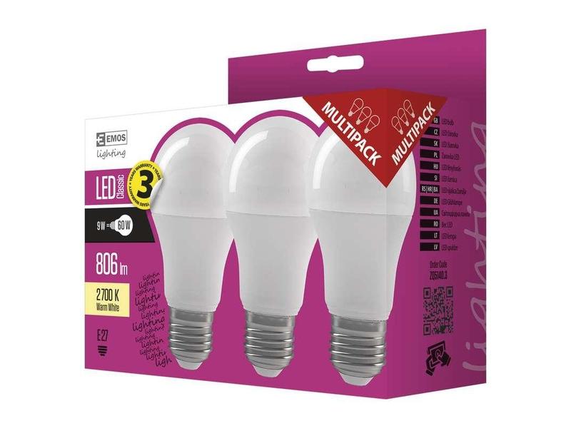 LED žárovka EMOS CLASSIC A60 9W(60W) 3ks
