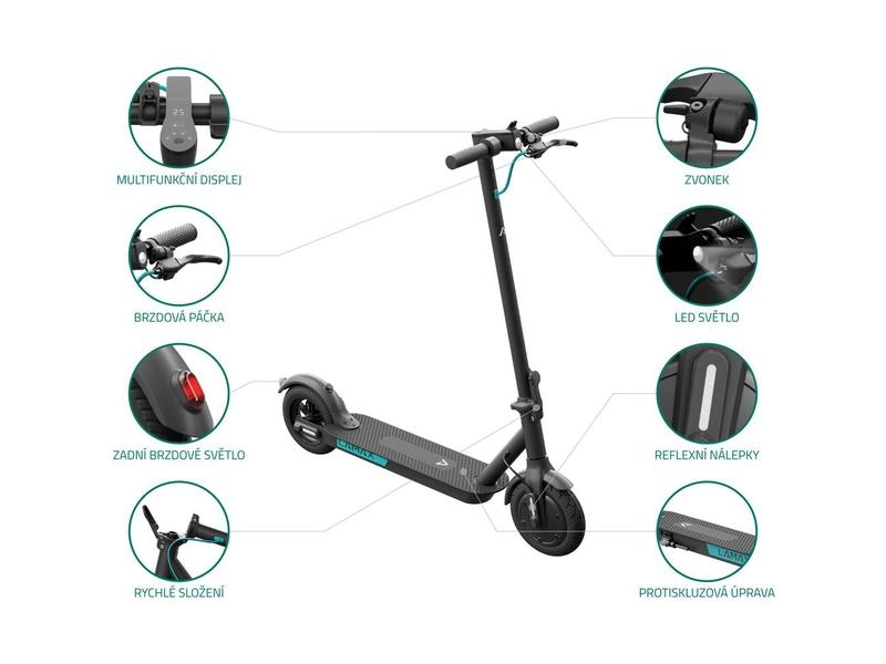 koloběžku samozřejmostí. S pomocí vyššího výkonu 350 W se nezastavíš ani v