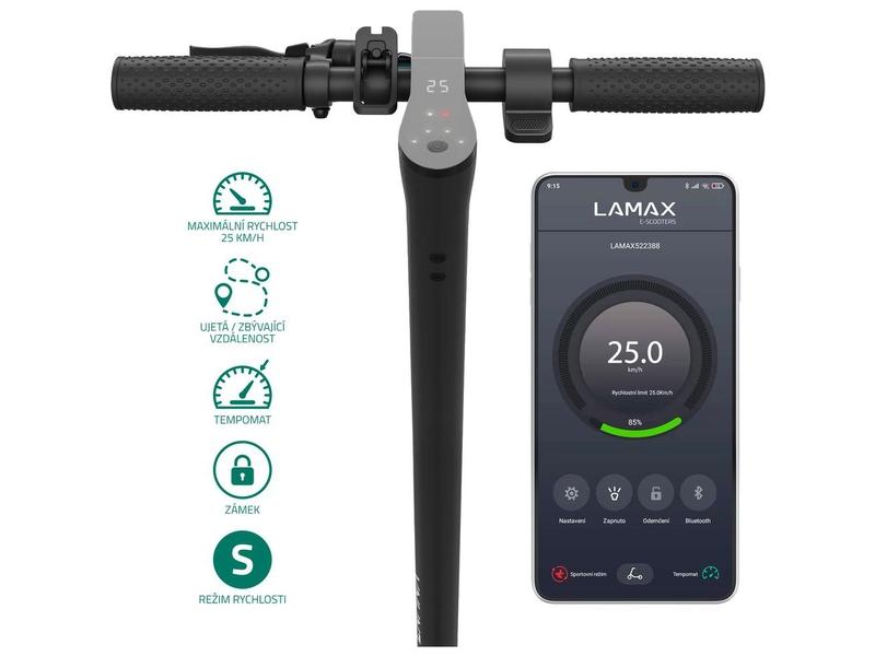 LAMAX. V aplikaci vidíš stav baterky a můžeš koloběžku zamknout. S váhou