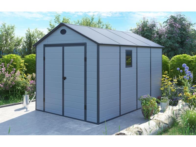 Zahradní domek, 241 x 366 cm, plastový, světle šedý
