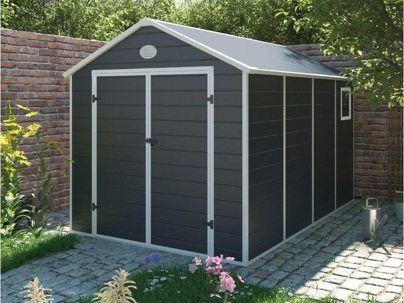 tvrzeného plastu. Střecha zahradního domku je zkonstruována