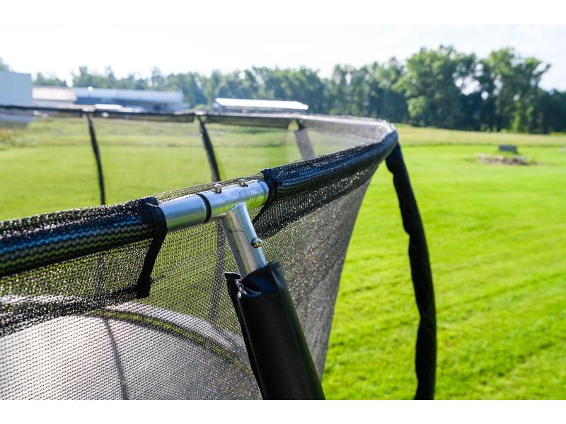 strany, takže se děti při skákání o rámové sloupky zahradní trampolíny