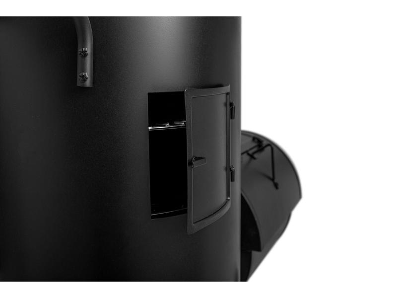 Na zadní straně udírny jsou malá dvířka, kterými můžete pohodlně