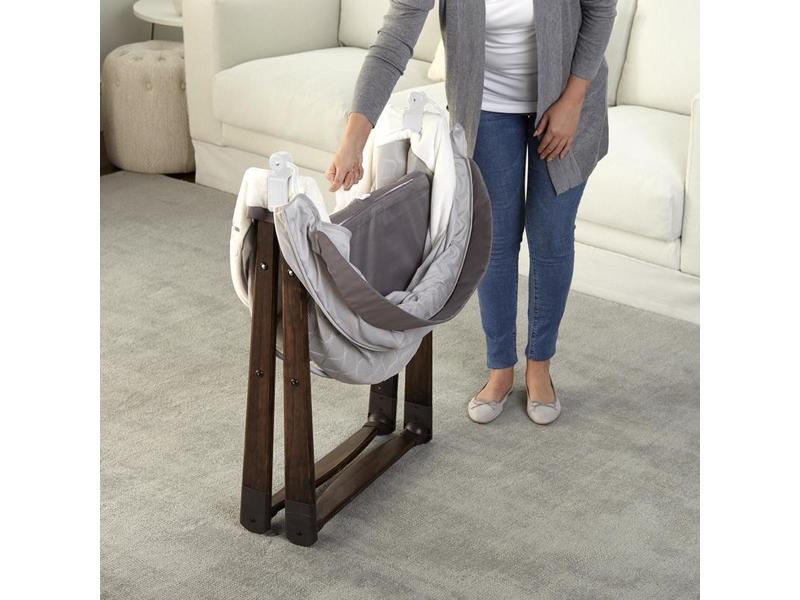 Navrženo s ohledem na rodičovství. Lehká skládací houpací dřevěná postýlka