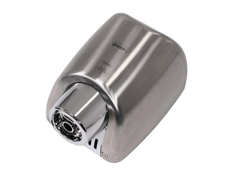 Osoušeč rukou BOOSTER se od jiných osoušečů vyznačuje výraznou pochromovanou tryskou kruhového tvaru. Díky silnému 550 W motoru je vysušení rukou velmi rychlé.