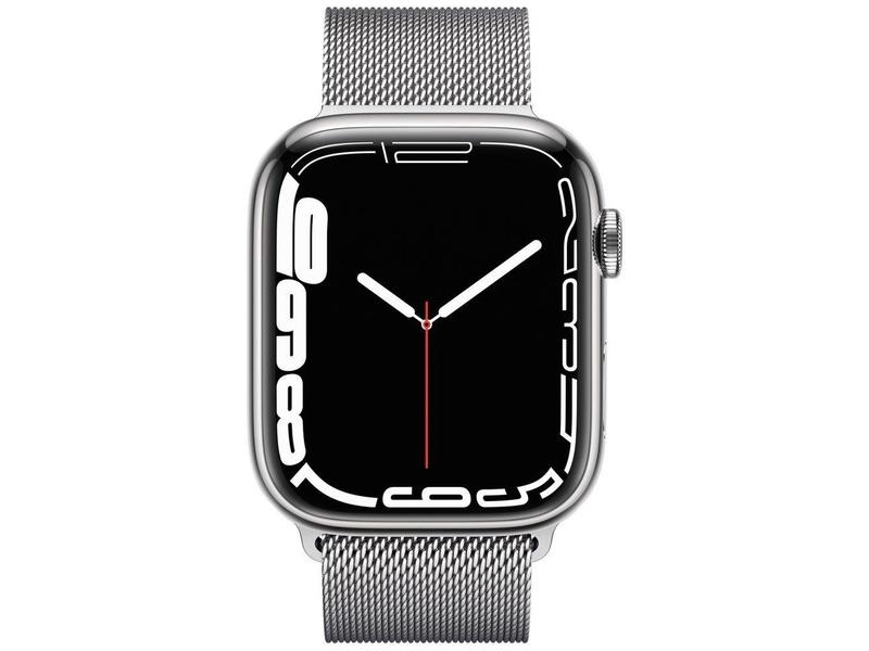 Chytré hodinky APPLE Watch S7 GPS Cellular, 45mm stříbrný nerez se stříbrným milánským tahem