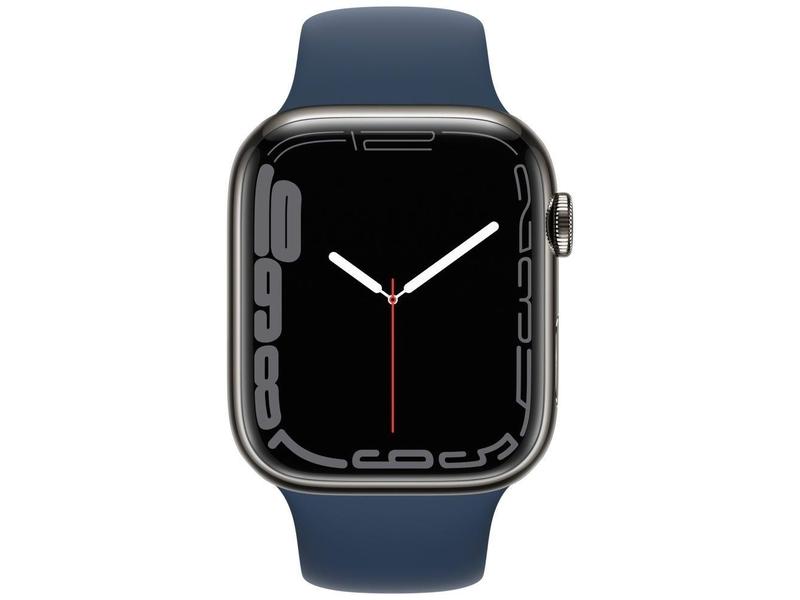 Chytré hodinky APPLE Watch S7 GPS Cellular, 45mm grafitový nerez s modrým sport řemínkem