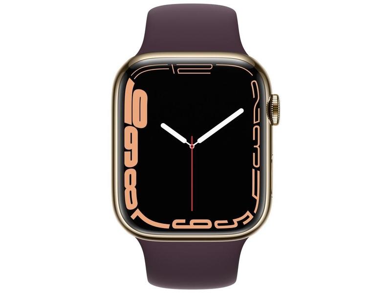 Chytré hodinky APPLE Watch S7 GPS Cellular, 45mm zlatý nerez s višňovým sport řemínkem