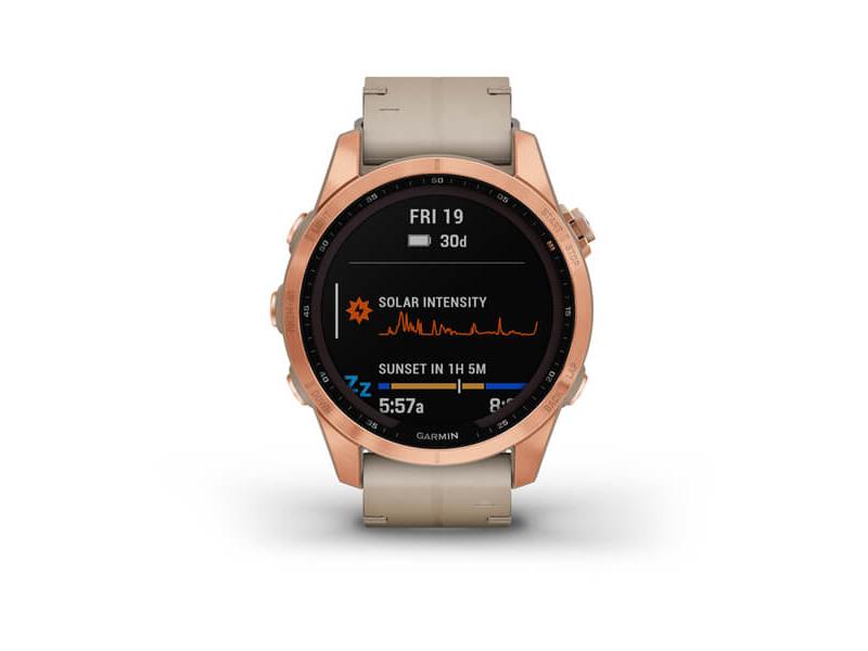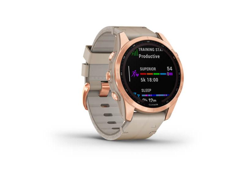 Chytré hodinky GARMIN fenix 7S PRO Sapphire Solar Style, Titan Rose Gold / Limestone Leather Band