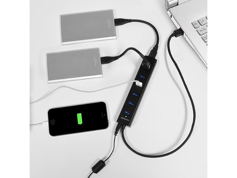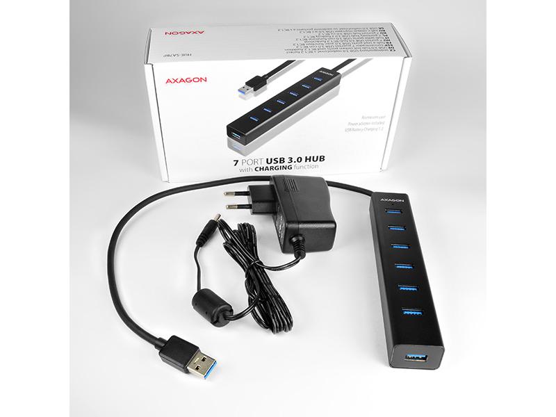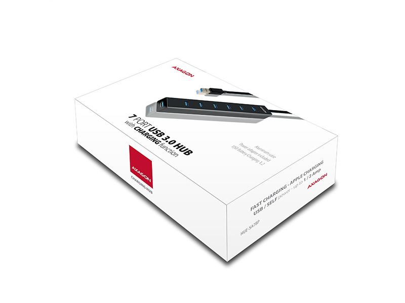 7-portový USB 3.0 hub AXAGON HUE-SA7BP ALU CHARGING s