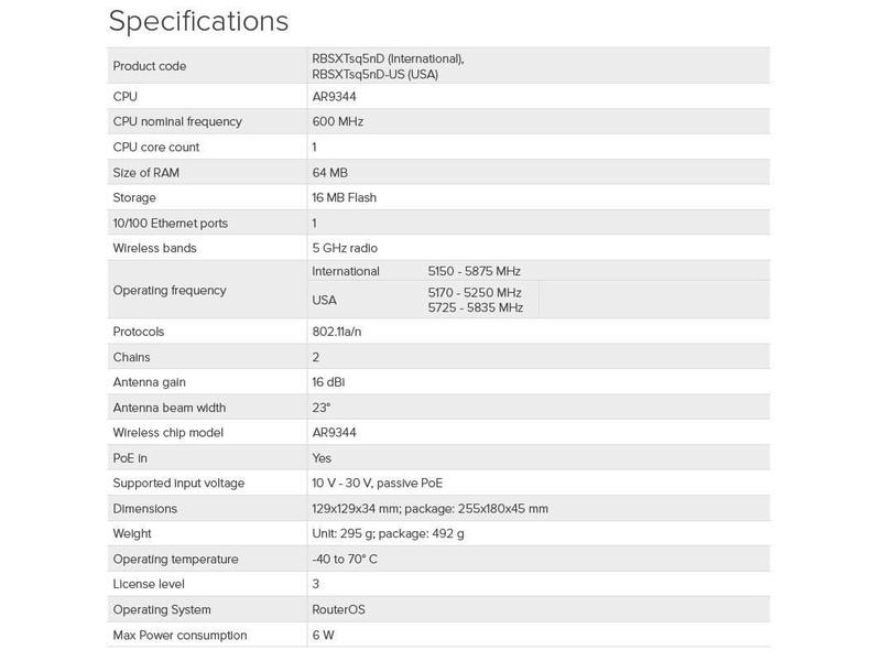 integrovanou duální 5 GHz anténou se ziskem 16 dBi a výstupem až 25 dBm.
