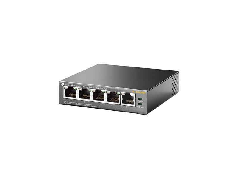 switch TL-SG1005P je vybaven pěti porty s rychlostmi přenosu 10/100/1000