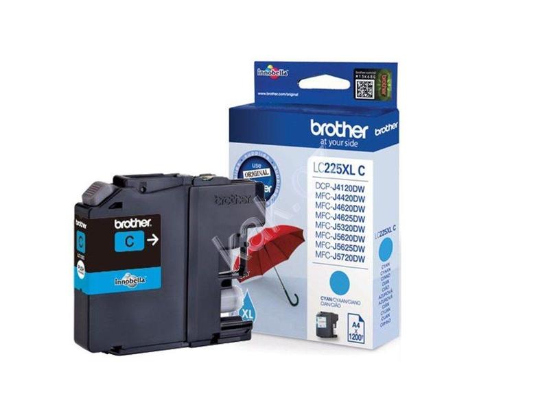 Inkoustová náplň BROTHER LC-225XLC, modrá (blue), 1.200 stran