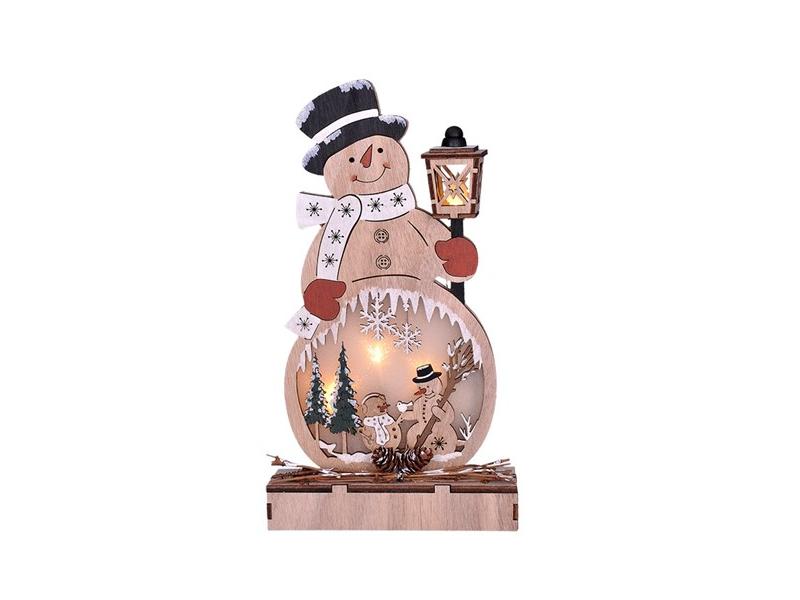 SOLIGHT dřevěný sněhulák, 4x LED, 2x AA teplá bílá 1V233